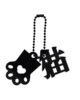 This acrylic keychain combines the kanji character for cat, a silhouette motif and a ball chain.