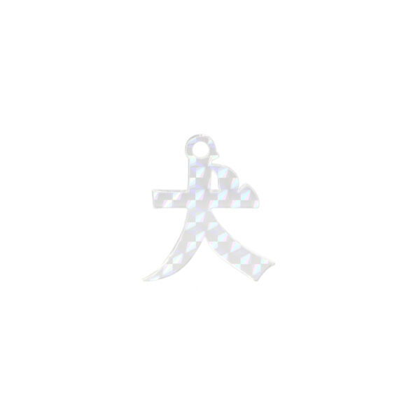 This acrylic keychain combines the kanji character for dog, a silhouette motif and a ball chain.