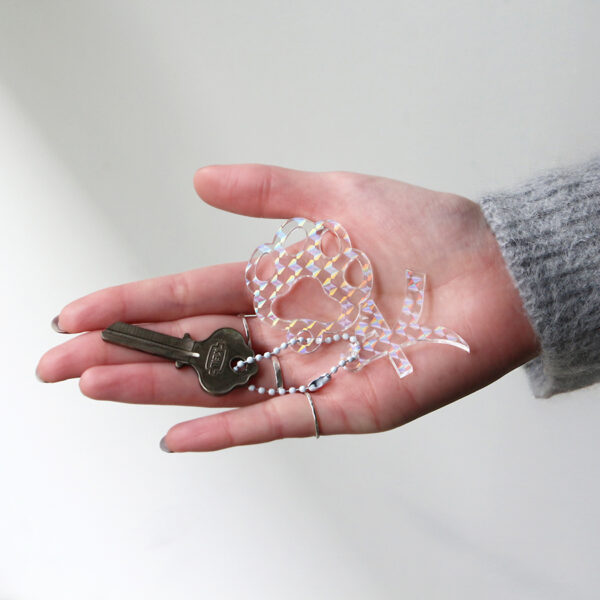 The holographic body is paired with a white ball chain, making it simple yet subtly way to show of your dogloving side.