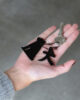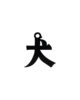 This acrylic keychain combines the kanji character for dog, a silhouette motif and a ball chain.