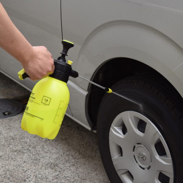 A pressure sprayer that uses a pump to compress air and spray the water and detergent inside into a fine mist over a long period of time.