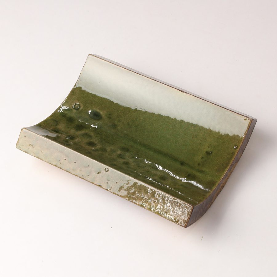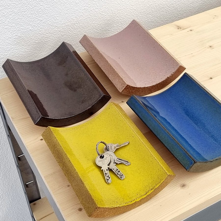 This is a product created in collaboration with London-based designer Max Lamb and Tajimi Custom Tiles. All of the collaborative works between Max Lamb and Tajimi Custom Tiles are made up of four different tile shapes, and this is one of them. The inside is glazed and can also be used as a fruitbowl or tray for placing small items.